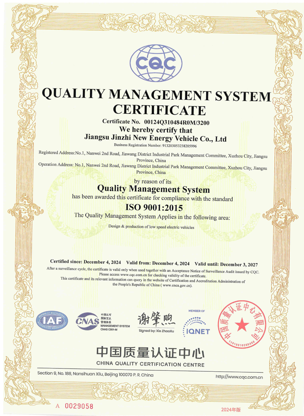 Corporation:Jiangsu Jinzhi New Energy Vehicle Industry Co., Ltd.